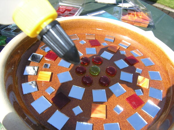 Ein solches Mosaik kannst du dir auch basteln! Wie wäre es mit einer Vogeltränke für den Garten? Das ist auch ein hübsches Geschenk.