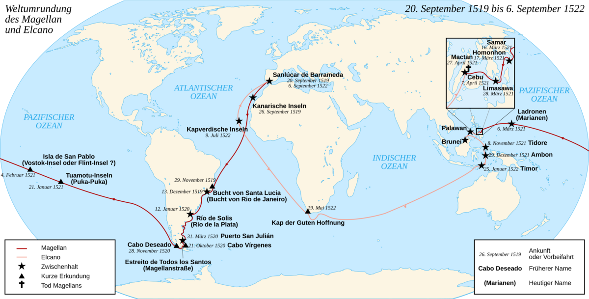 Auch wenn Magellan selbst nicht nach Europa zurückkehrte, gilt er als erster Weltumsegler. Mit dieser ersten Weltumsegelung war auch endgültig bewiesen, dass die Erde eine Kugel ist! Den Umfang der Erdkugel, den man vorher als viel kleiner eingeschätzt hatte, erkannte man nun ebenfalls richtig. Dadurch erwies sich die westliche Seeroute allerdings auch als unpraktisch und viel zu weit.