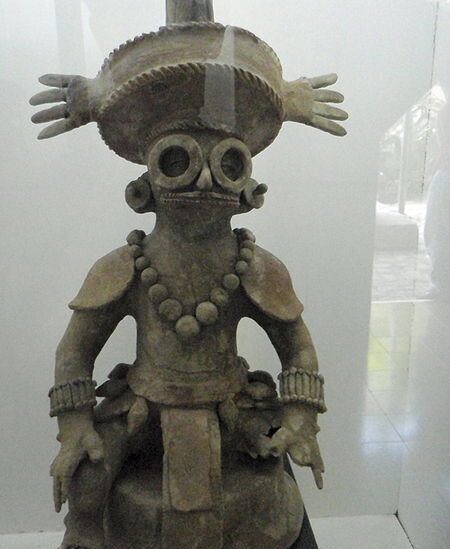Der Herrscher trugen natürlich mehr als nur den Lendenschurz, der übrigens Ex heißt. Darüber trug er ein Hüfttuch, einen Rock und eine Jacke, die mit Federn geschmückt war. Auch die Sandalen waren reich verziert. All diese Kleidung wurde häufig aus Jaguarfell angefertigt. Dazu trug er Schmuck. Es gab nicht nur Fingerringe, sondern auch solche für die Nase und die Unterlippe.