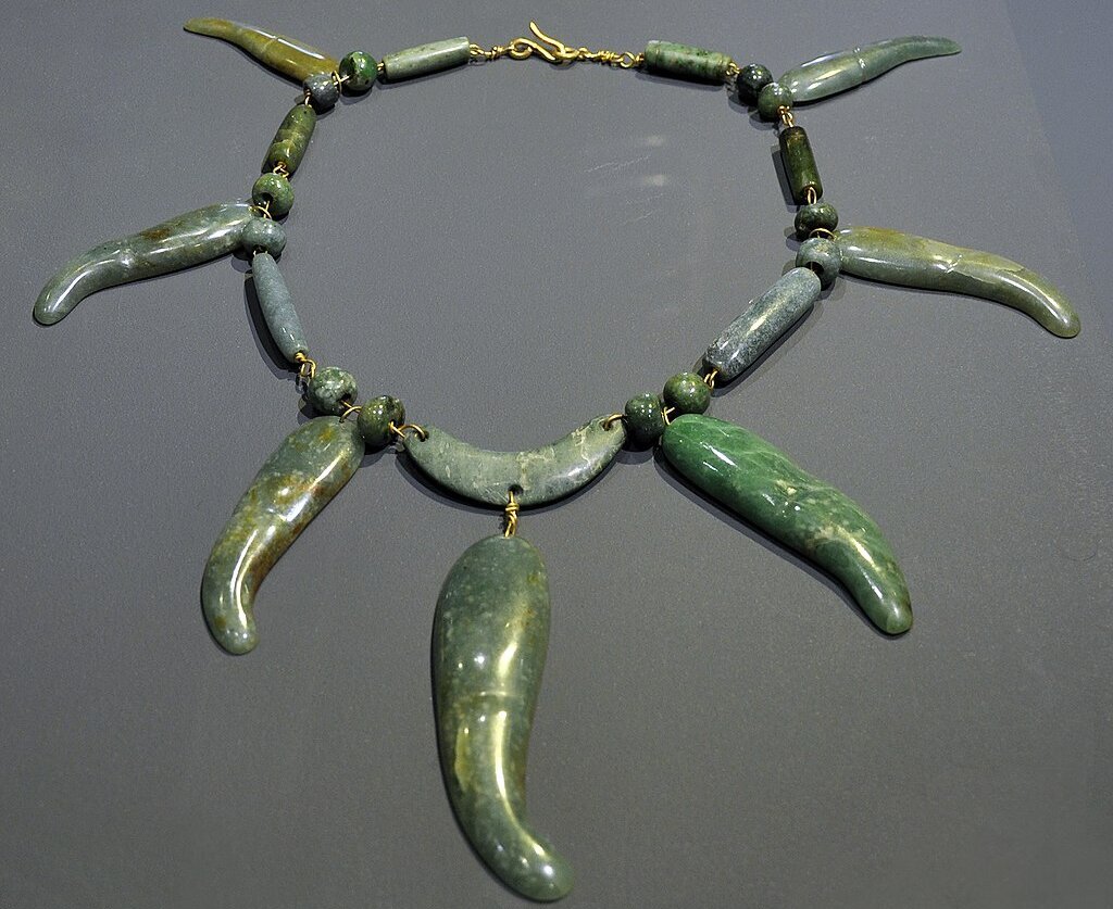 Dazu kommen kleinere Figuren, von denen manche wie Menschen, andere wie Tiere aussehen. Es gibt auch Figuren, die wie Babys aussehen. Manche sitzen, andere Figuren stehen. Und auch Mischwesen gibt es, wie den berühmten Jaguarmenschen. Für Schmuck wurden gerne Obsidian und Jade, ein grünlicher Stein, verwendet. Auch Keramik stellten die Olmeken her, zum Beispiel Flaschen, Schüsseln und Gefäße. Manche haben die Form von Tieren.