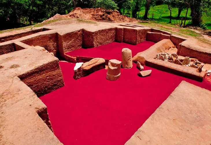 Laguna de los Cerros ("See der Hügel") verdankt ihren Namen den fast 100 Erdhügeln, die die Landschaft prägen. Solche Erdhügel wurden rund um große rechteckige Plätze aufgeschüttet. Größere Hügel dienten als Wohnplattformen. Riesenköpfe hat man hier nicht gefunden.
